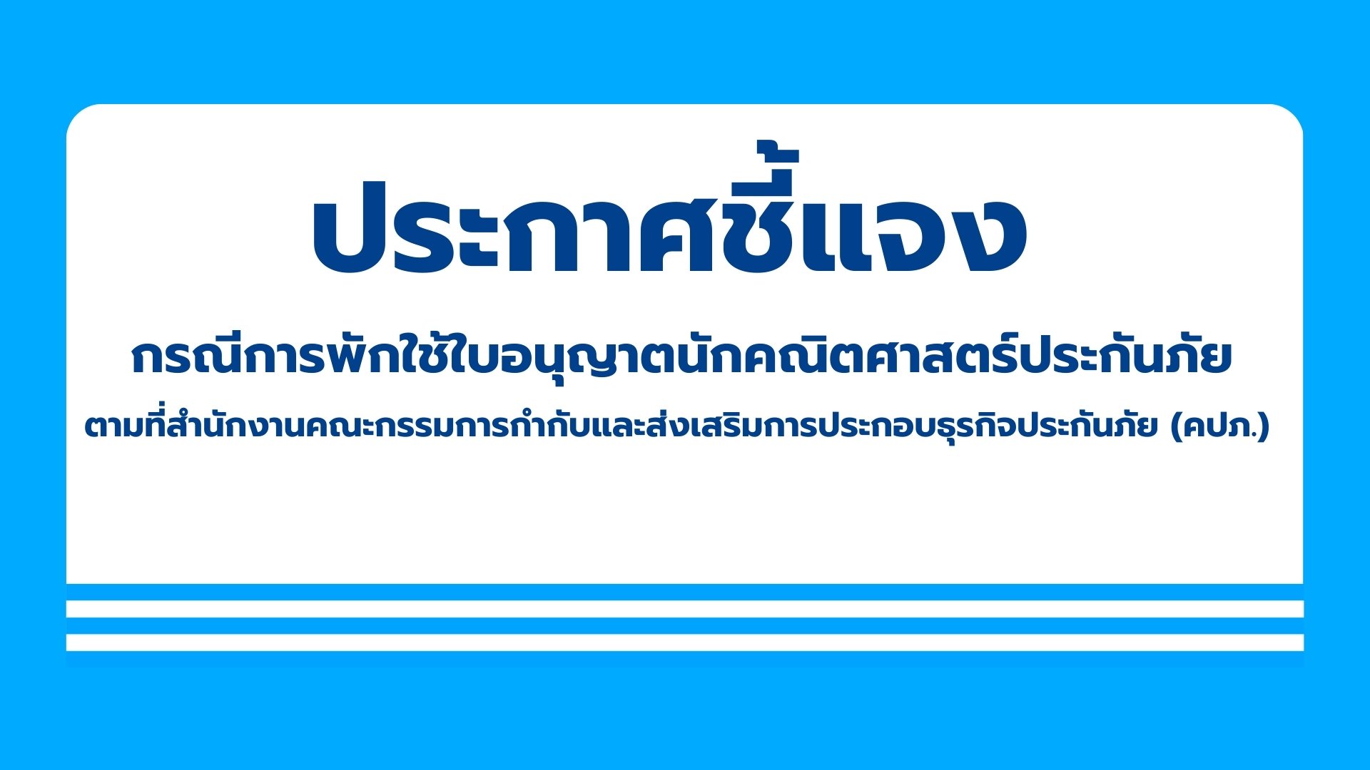 ประกาศชี้แจง กรณีการพักใช้ใบอนุญาตนักคณิตศาสตร์ประกันภัย