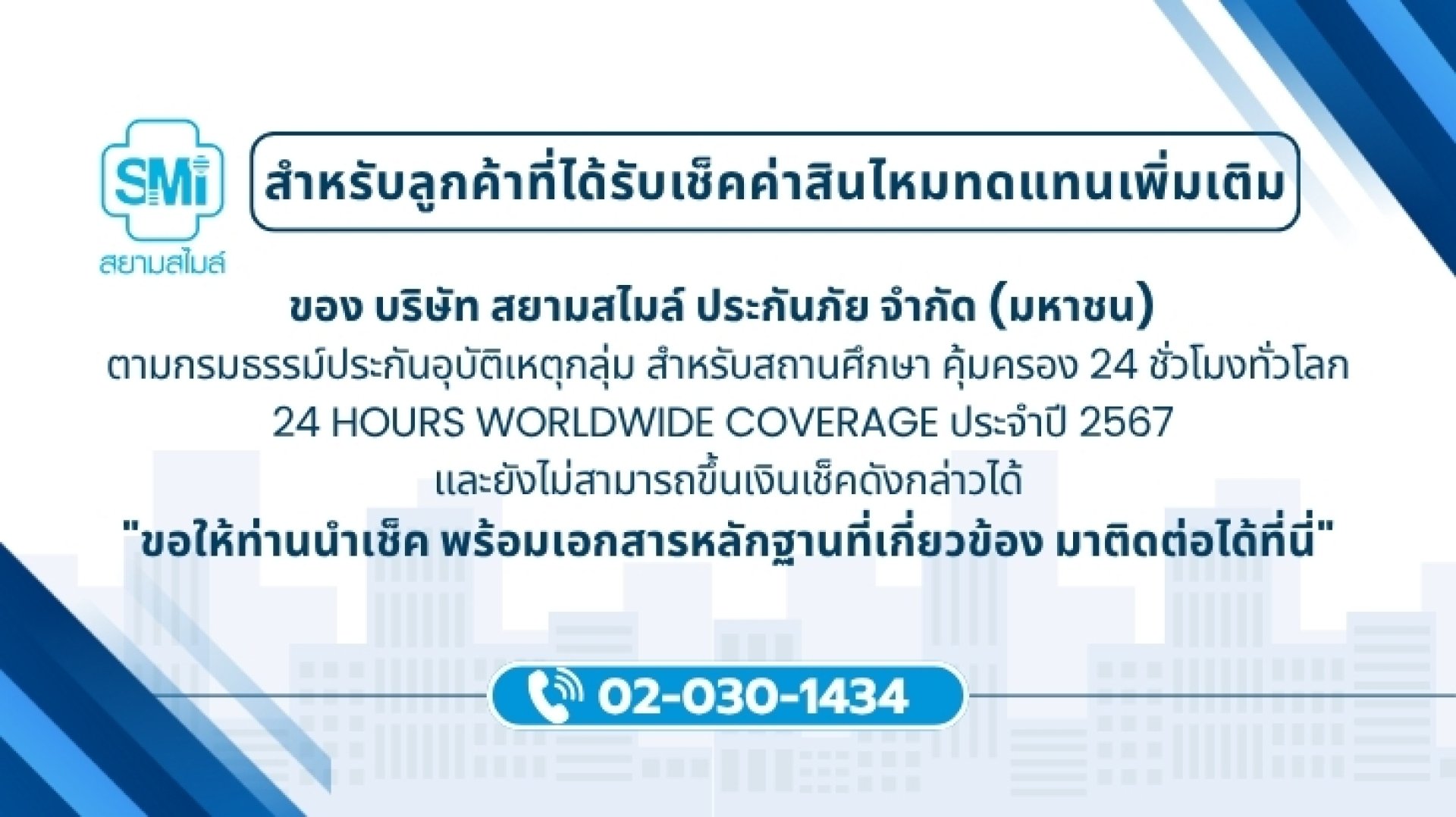 สำหรับลูกค้าที่ได้รับเช็คค่าสินไหมทดแทนเพิ่มเติมของ บริษัท สยามสไมล์ ประกันภัย จำกัด (มหาชน)